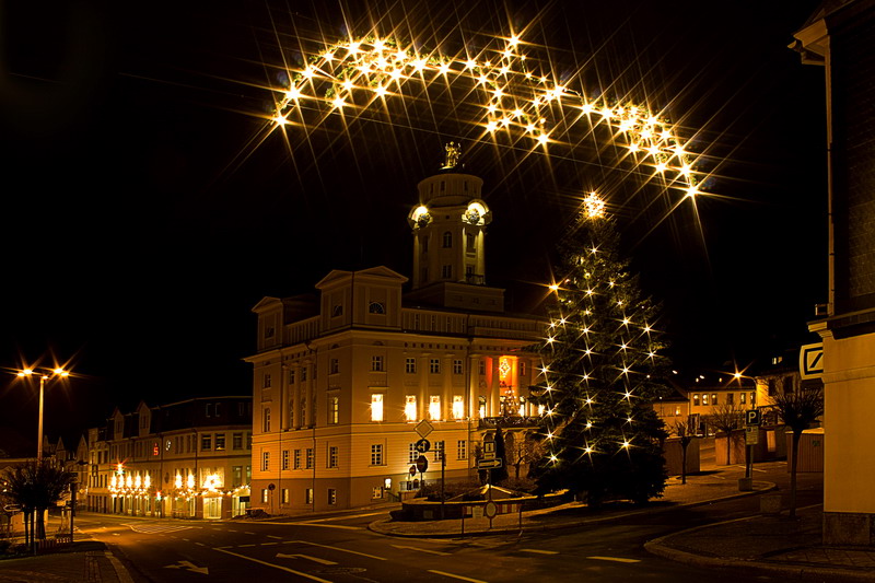 Danke für die Kommentare! Die Uhrzeit war so etwa 21.30 Uhr nach unserem Fotoclub. Aufgenommen wurde es in Zeulenroda. Dieses niedliche Gebäude ist übrigens unser Rathaus.