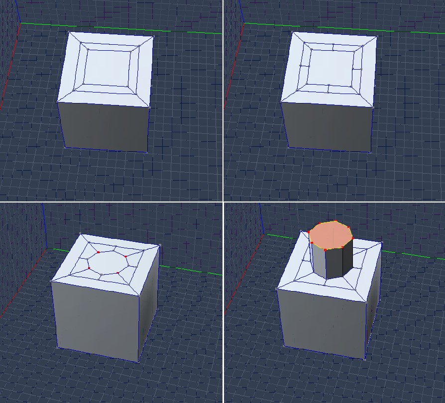 Setze einfach den gewünschten Zylinder paßgenau auf die Fläche des Würfels.