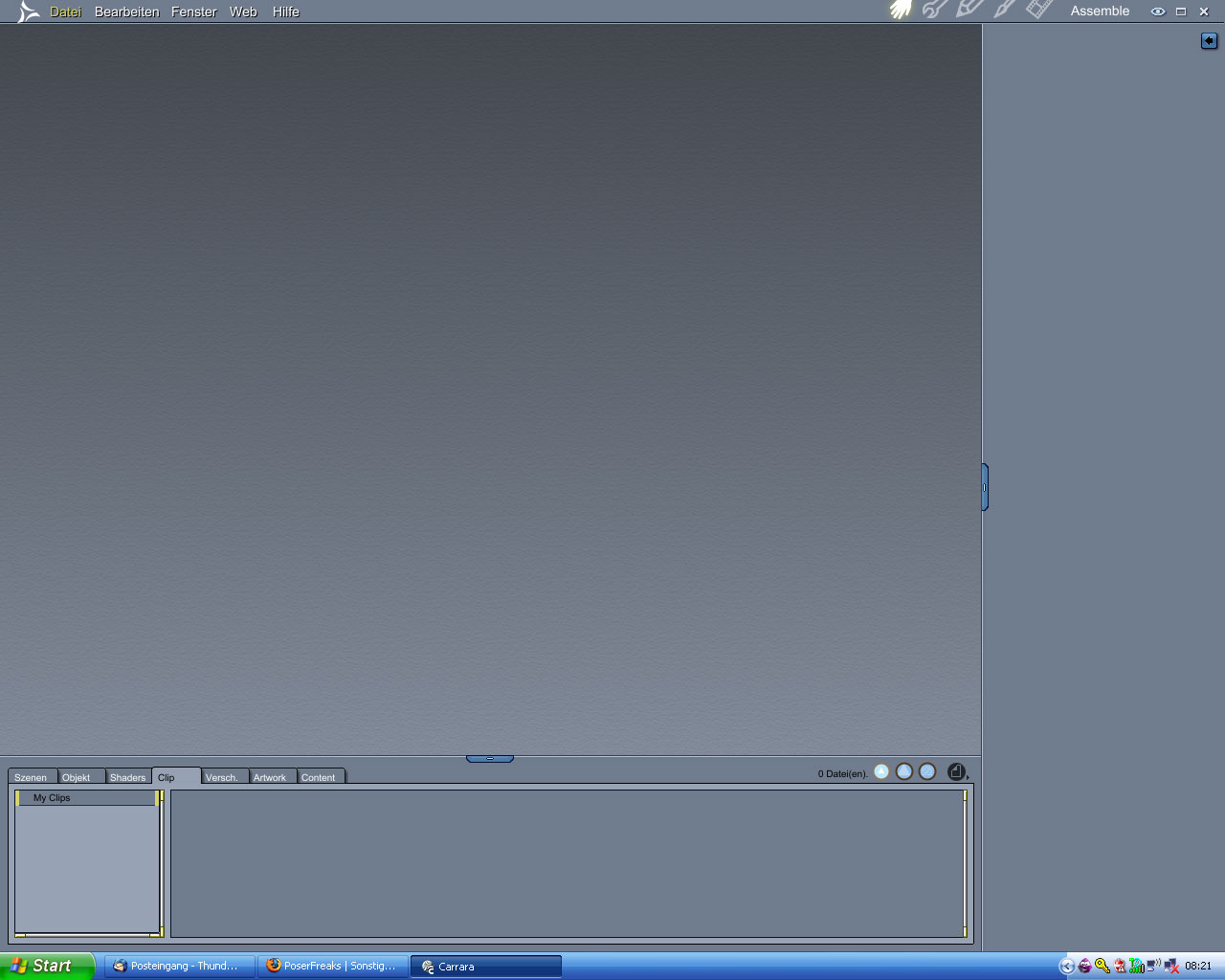 Als 1. ich bin absoluter Neuling mit Carrara habe ein paar Anfänger-Tuts hier rausgefischt und wollte mich mal mit dem Progi befassen :evil: