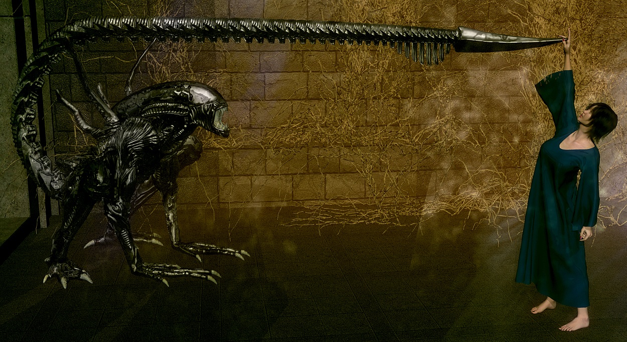 Der lange Schwanz des Alien scheint mir etwas übertrieben.