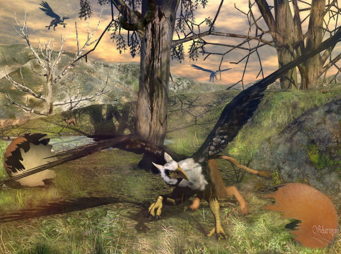 Allerdings stört mich ein wenig, dass der vordere Greif etwas unscharf, der Baum dafür ganz deutliche Konturen zeigt.