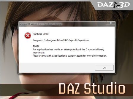wenn ich DAZ über Bryce sterte um was zu importieren bekomme ich immer eine Fehlermeldung. Starten und importieren funktioniert aber dennoch.