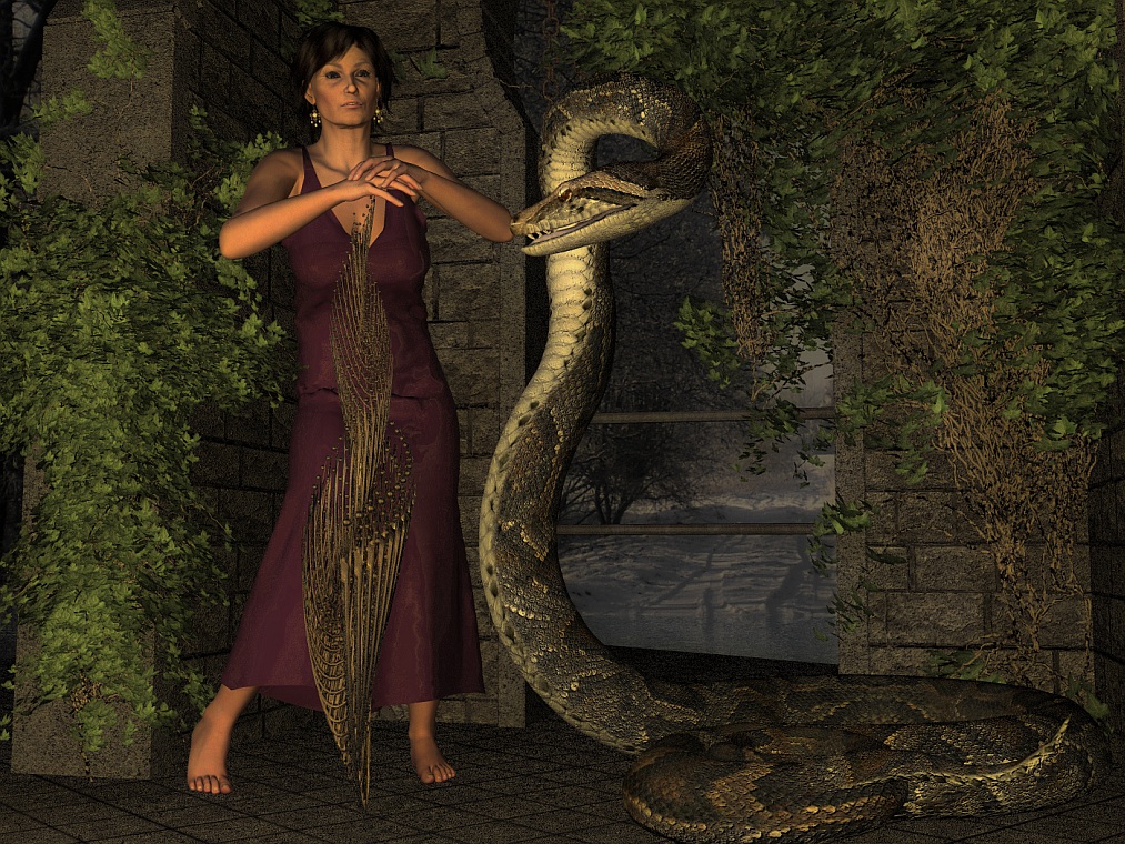 Aber ich muss gestehen, dass ich ein wenig den Schatten vermisse. Irgendwie kommt mir das Bild jetzt ein wenig "künstlich" vor, als wären die Frau / Schlange einfach über ein Hintergrund-Pic gerendert.