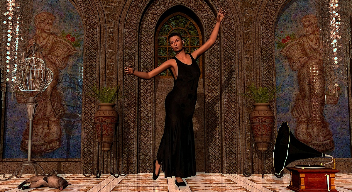 Da muss die Katze aber aufpassen, dass sie der Tänzerin nicht zwischen die Füße kommt.