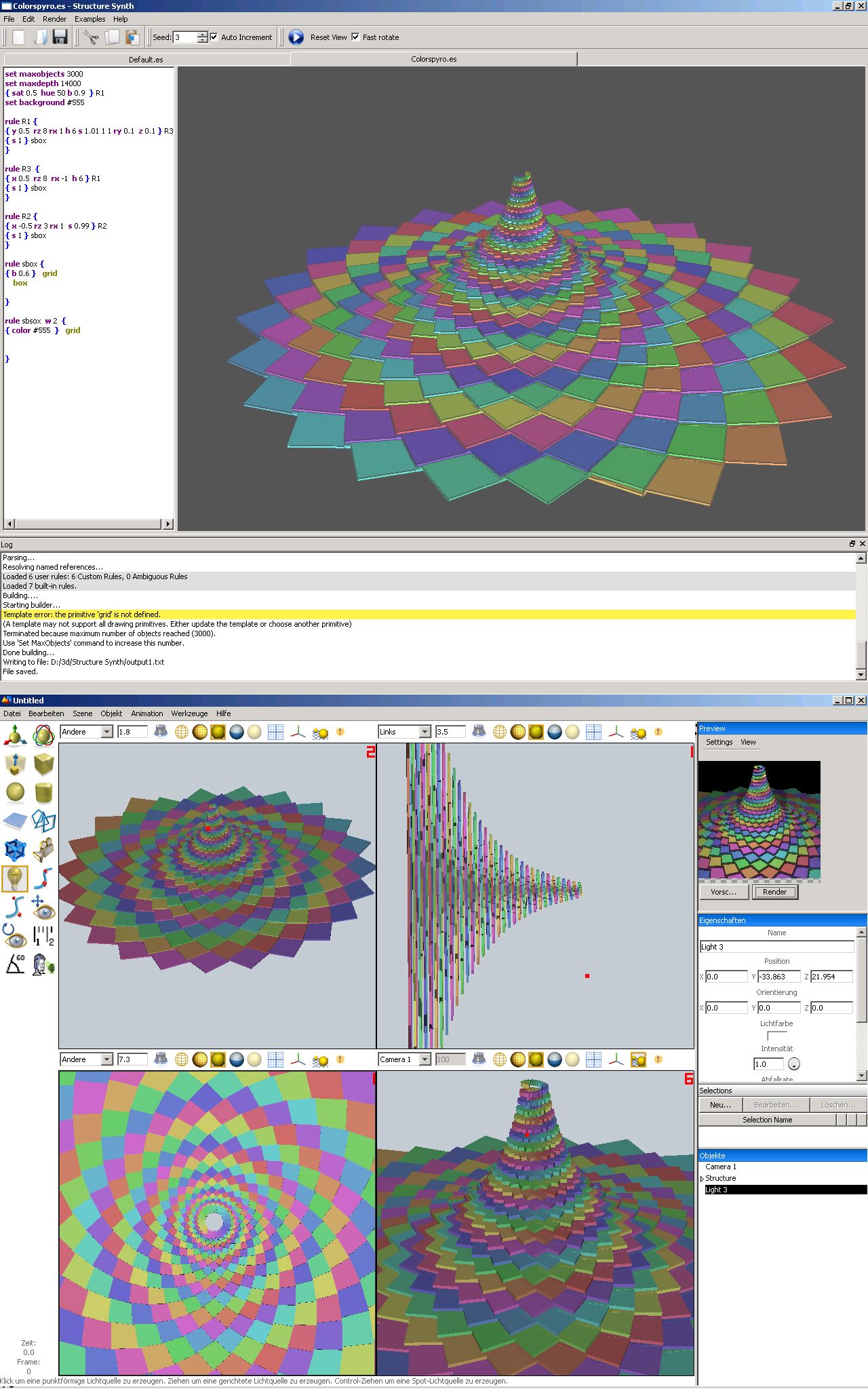 Structure Synth ist ein rekursiver Modeler der mit kurzen Anweisungen gefüttert wird.