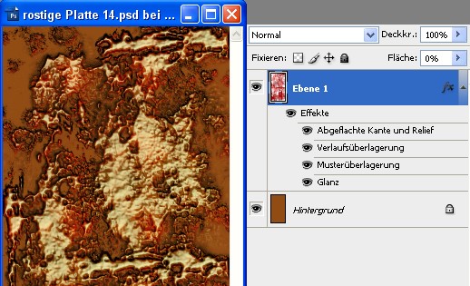 Hier bastele ich an der Textur einer rostigen Eisenplatte: