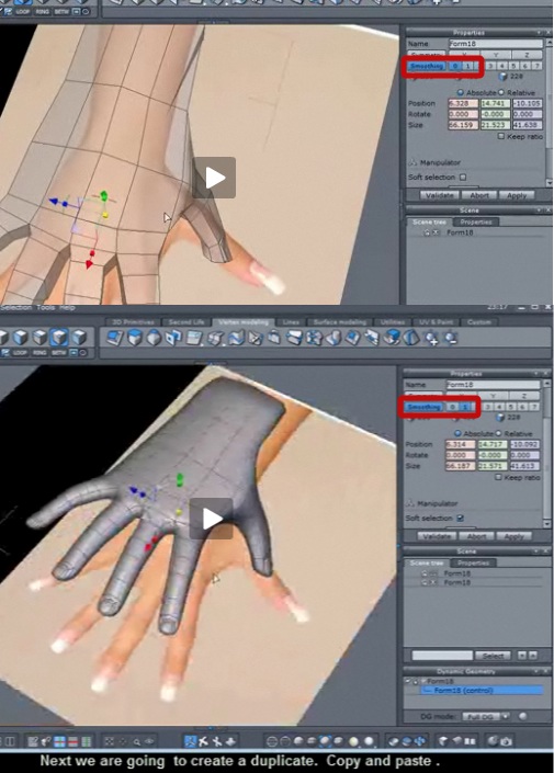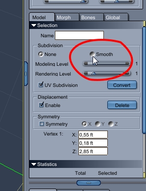 in Hexagon gibt es auch ein Smooth-Pinsel, aber der Smooth Pinsel ist hier in dem Fall nicht gemeint . Mit dem Pinsel kann man ein Mesh glätten .In Carrara hat es aber auch die Funktion Smooth , das das Mesh in weitere Polygone unterteilt und somit "weicher orgnischer " macht , du findest das im Vetex Modelling Room in der rechten Toolbar. siehe Screeenshot