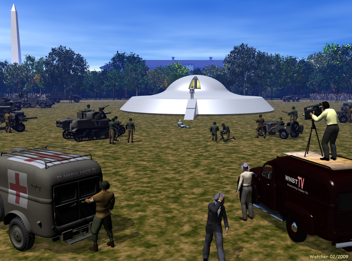 Bei dem TV Fahrzeug mußte ich auch ganz schön tricksen. Ich wollte halt, der Authentizität wegen, das gleiche Fahrzeug haben wie im Film von 1951. Ich fand aber leider nur den alten Ford als Pick Up. Was tun? Nach einigem hin und her überlegen hab ich dann aus dem Abulanzfahrzeug und dem Pick Up den Panel Truck gebastelt. Ist sogar besser geworden als ich anfangs dachte. Die Filmkamera hab ich dann auch gleich mit Brxce gemacht, nachdem ich mir ein paar Fotos von originalen angeshen habe.