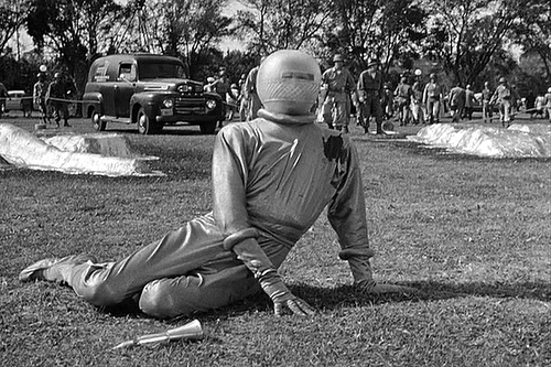 Du das ist wohl Zufall wenns so rüberkommt ;) Im Film von 1951 ist das Fersehen mit einem Kamerateam vor Ort. Und das wollte ich im Bild unbedingt mit einbringen.