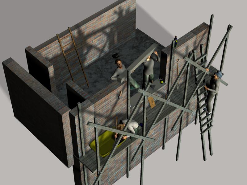 Ich hatte etwas Mühe damit, zu erkennen dass die Mauer ein Fensterloch hat. Es sah zuerst so aus, als ob der obere Typ rechts im Gerüstpfosten verschwinden würde.