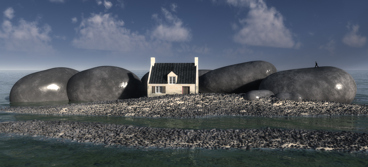 Nur finde ich die Reflektionen auf den Steinen ein wenig irritierend.... Auch wenn sie wegen einer Welle oder so nass geworden sind, dann müsste ein Reflektion auch auf dem Hausdach zu sehen sein.