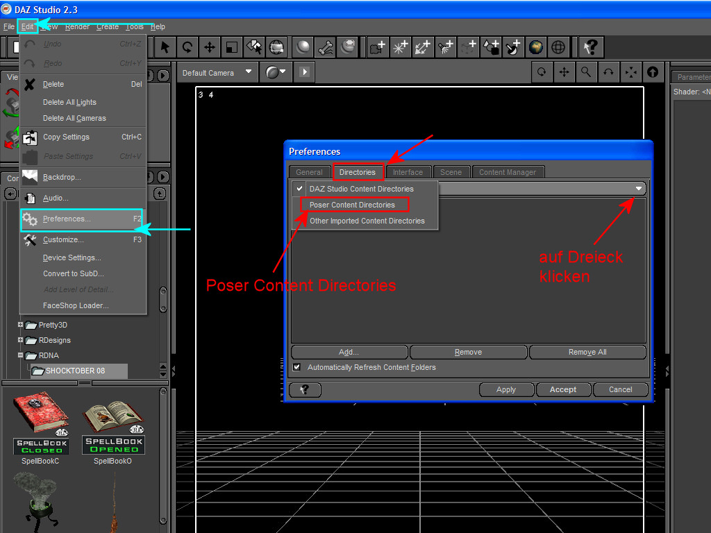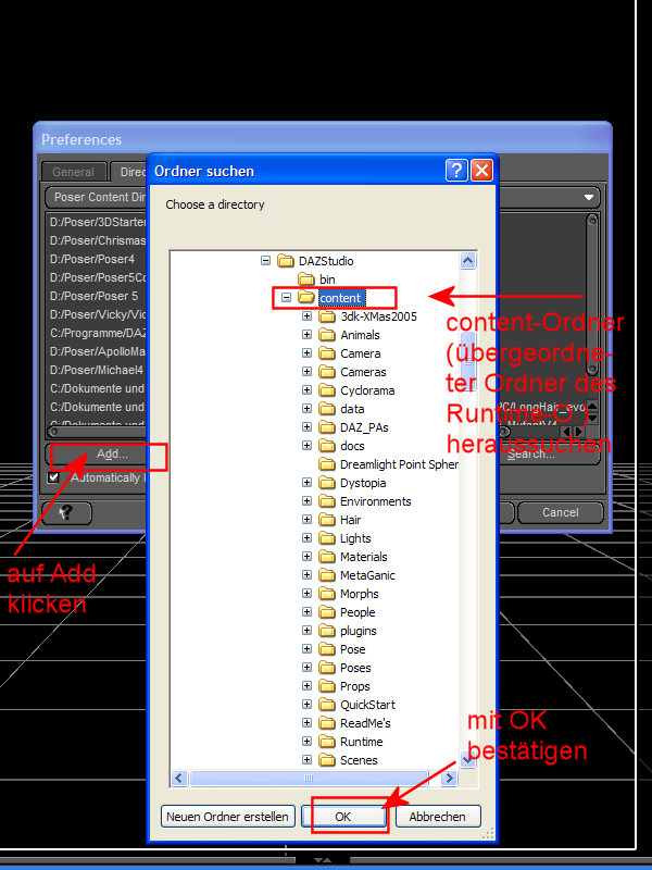 Die habe ich dann in den ordner D:/Content entpackt und auch einmal in D:/Content/Runtime. Aber die Sachen sind im DAZ Studio nicht zu finden. Woran kann das liegen?