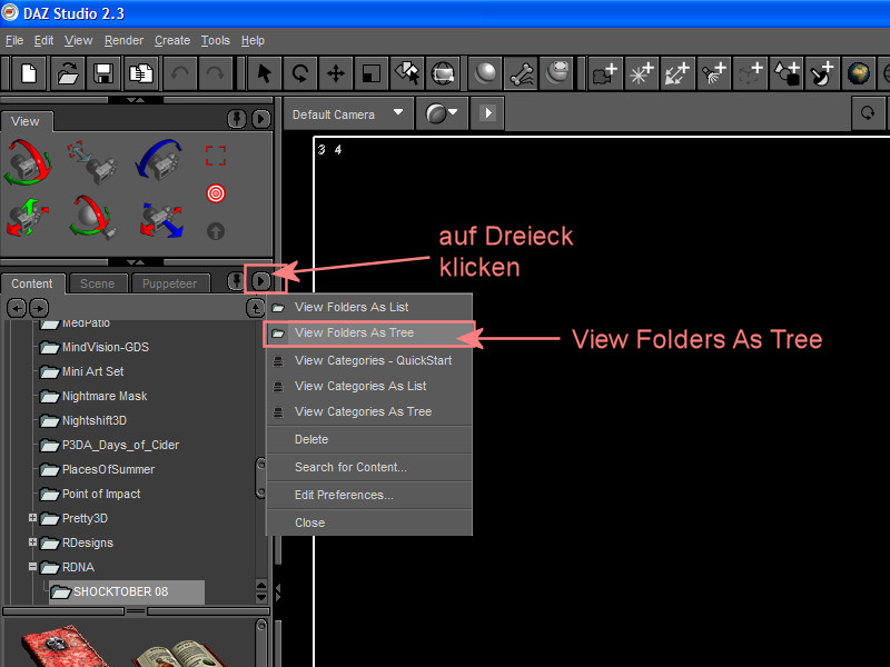 Manchmal bereiten die voreingestellten Anzeigeoptionen des Content-Tabs auch Schwierigkeiten. Ich stelle mir z.B. immer "View Folders As Tree" ein.