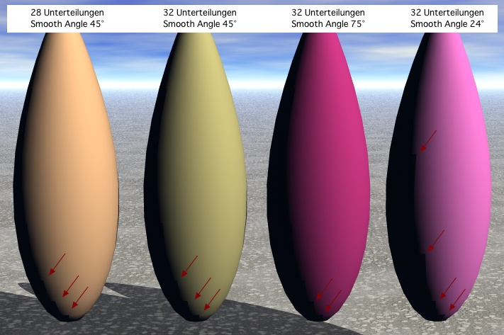 Früher dachte ich auch ne Bryce Kugel wäre mit ihren 256 Polygonen schön glatt - nur; so wenig hat sie gar nicht - auch wenns da steht. Die hat nämlich 2040 Polys und ist deshalb smooth.