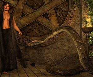 wieder ein schönes Bild geworden. Ich finde die Texturen klasse. Sehr detailliert. Auch die Farben wirken sehr warm. Vielleicht sollte Deine Figur etwas ängstlicher auf die Schlange schielen. Ich würde dieses Monster jedenfalls genauer im Auge behalten wollen. Die führt bestimmt nichts Gutes im Sinn...
