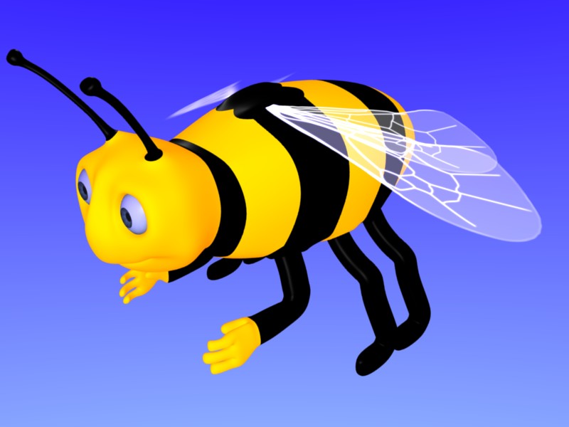 Also ich hab mich mal wieder an einen Toon-styled Charakter begeben. Dieser hier heißt Harald, ist eine ziemlich faule Hummel und wie man sieht noch recht Flügellos. Hat vielleicht jemand ideen wie man Insektenartige Flügel am dümmsten umsetzt?