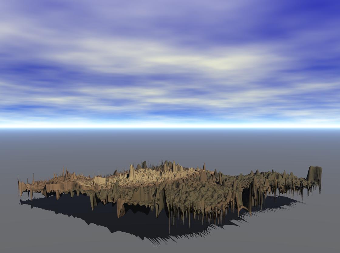 Die Terrainform, die auf einem tga-Bild basiert, hat mir irgendwie ziemlich gut gefallen. Ich habe daher eine kleine Freebie-Kollektion zusammengestellt, die auch das Terrain enthält, das ich für die Szene verwendet habe. Die Zip-Datei enthält insgesamt 5 Terrain-Bilder (im .tga-Format), zwei davon nahtlos kachelbar. Die Auflösung der Terrains ist 1024x1024 bzw. 2048x2048.