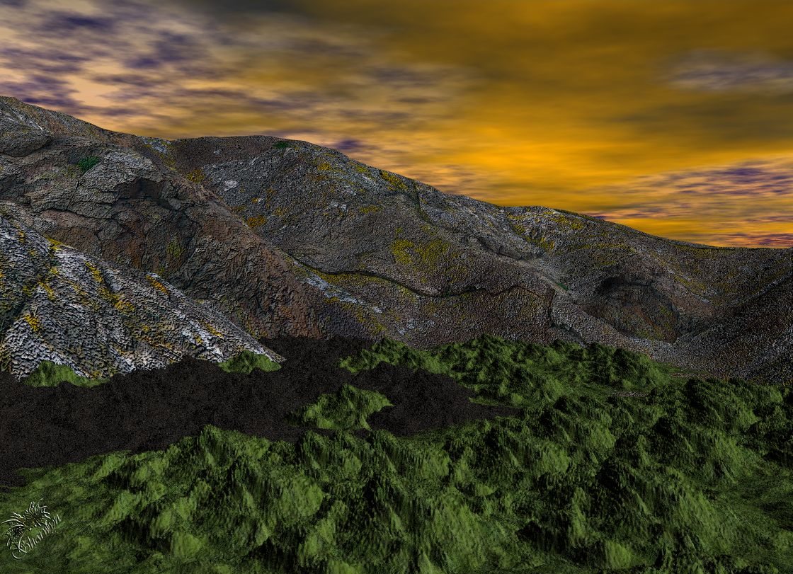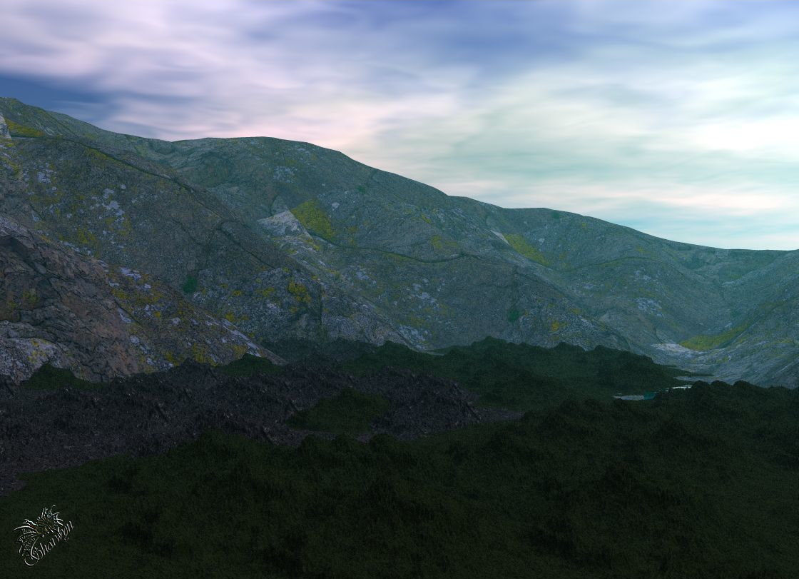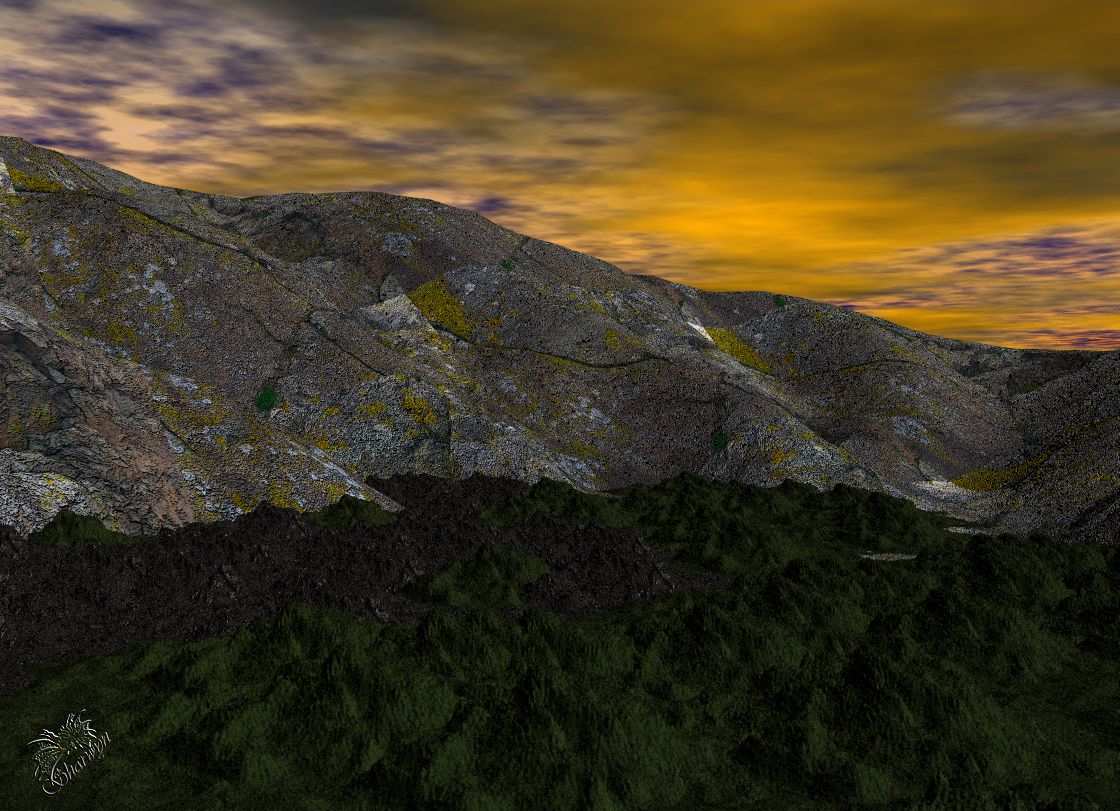 die Textur des Gebirgszuges sieht gut aus, das vordere wirkt etwas zu "glatt" / künstlich.