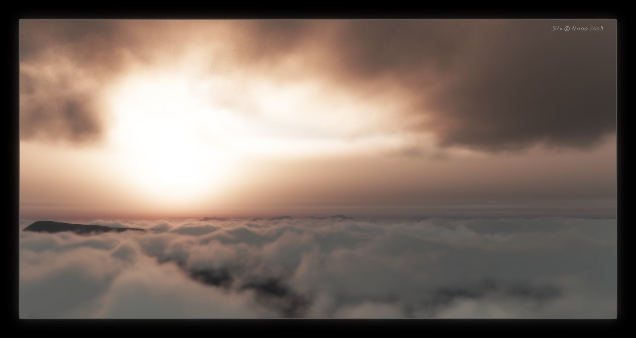 @ Kushanku: "Nur" weil... Zwei mal auf Wolkenlayer geklickt, ein paar Parameter verschoben, die Kamera in die Höhe geschraubt, die Sonne positioniert, Farben angepasst und auf den Renderknopf gedrückt.