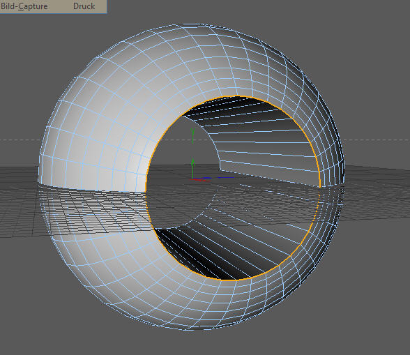 Oder (viele Wege führen nach Rom): Nimm einen Zylinder ohne Deckflächen und ordne ihm ein Kugel - Deformer - Objekt unter. Dann aktiven Zustand in Objekt wandeln, Die Kanten der Löcher auswählen und mit dem Vernähen - Werkzeug verbinden.