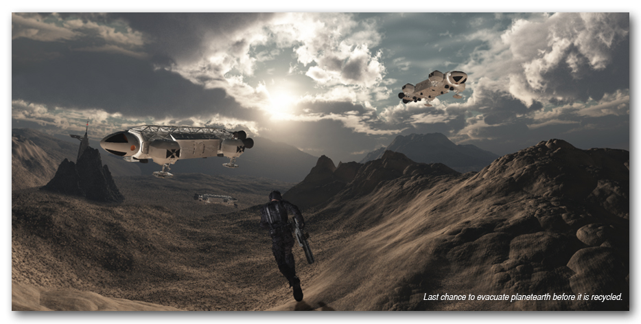 Eigentlich ists ja Gegenlicht, trotzdem scheinen die Raumfähren von vorne beleuchtet zu sein.