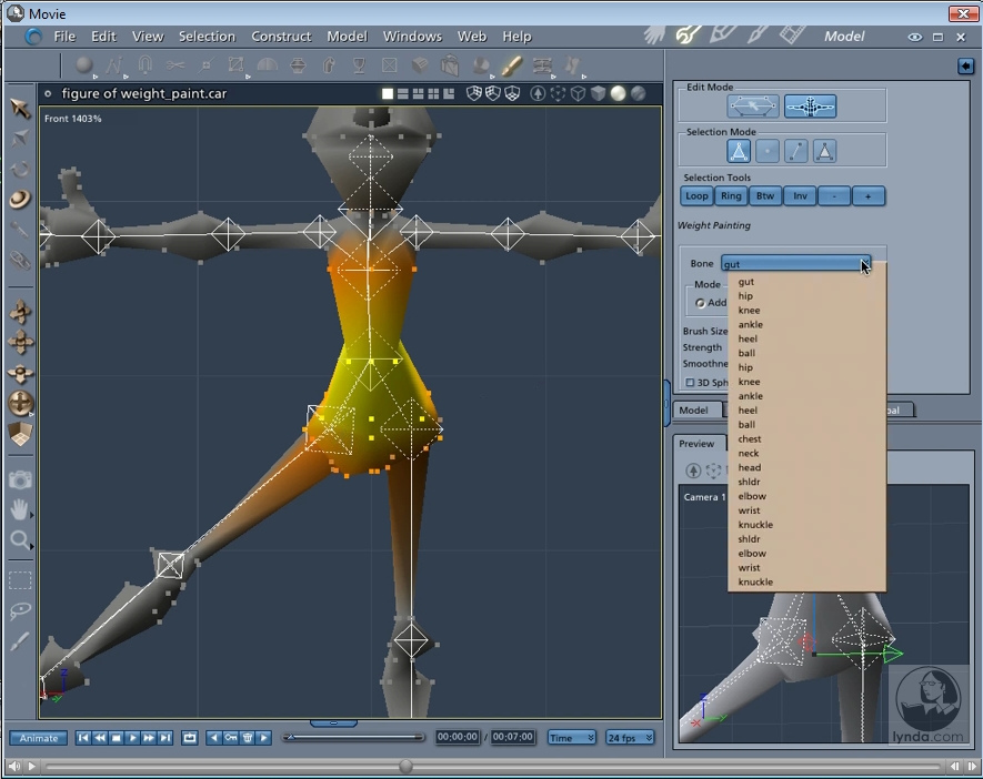 • Richtig animiert habe ich eigentlich noch nicht, nur mal was in conforming Cloth eingebaut. Ich habe aber den OnlineKurs von Mark Bremmer besucht und auch die Jack Withney Carrara Trainings CD angeschaut. Ich fand beide sehr anschaulich wie das mit den animieren per Bones und Morphs in carrara geht. Soweit ich gesehen habe setzt man da nicht nur einfach die BoneHirachie ausgehend von der Hüfte ein, sondern steuer das Verhalten der Gelenke über Wichtungs Painting (siehe Bild 2) und inverse Kinematik. (siehe bild 1) Wie gesagt ich bin ein Newbie , aber ich konnte das an Hand der Kurse gut nachvollziehen wie das in etwa funktioniert. Ich denke in anderen Programmen wird das so ähnlich ablaufen. Leider sind die Kurse nicht umsonst aber mir haben sie als Carrara-User viel beigebracht .