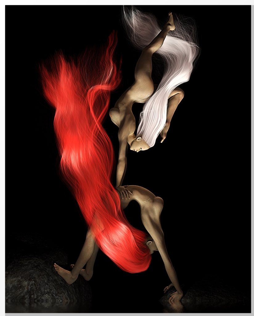 Starkes Bild - sehr gelenkig die Damen und diese Haare