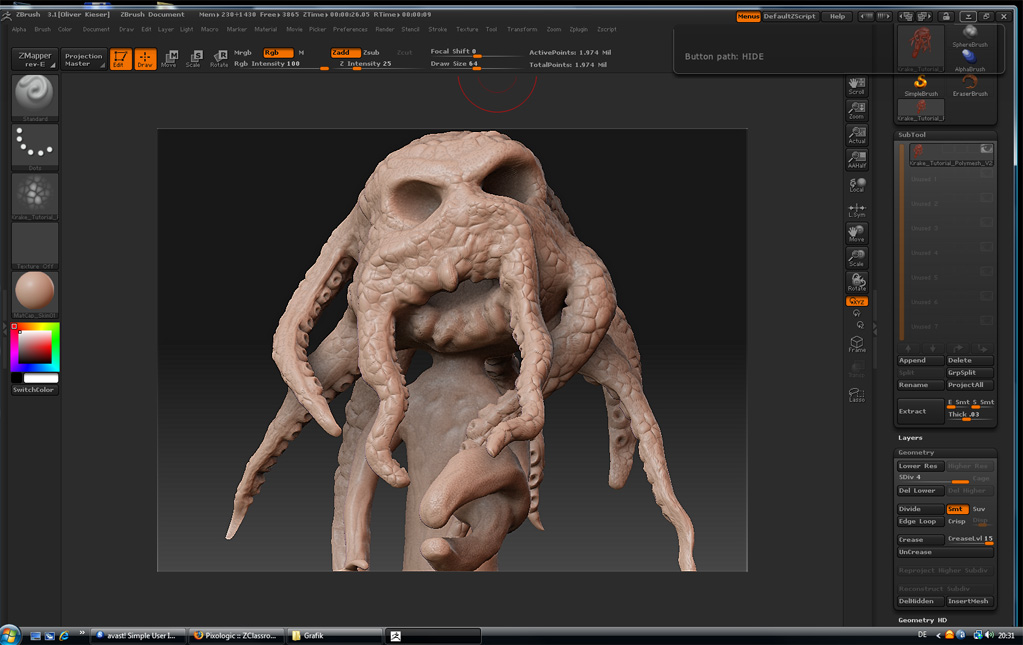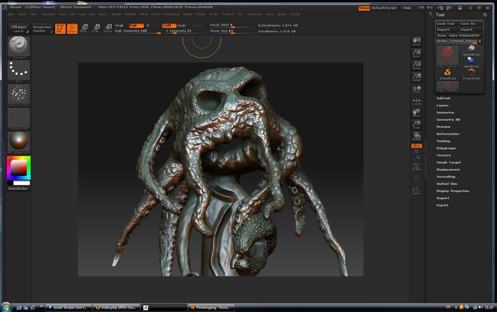 ja den BaseMash habe ich aus ZSpheres gemacht ist alles selbst gemacht halt nach einem Video Tutorial von der Pixologic