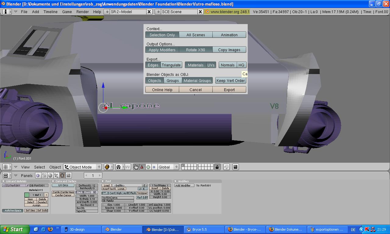 wie funktioniert´n das, das der schriftzug auch ein eigenständiges objekt wird, wenn ich das in bryce importiere?