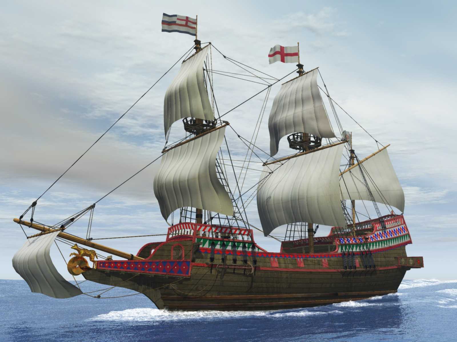 Die Golden Hind oder Golden Hinde auf Feindfahrt.