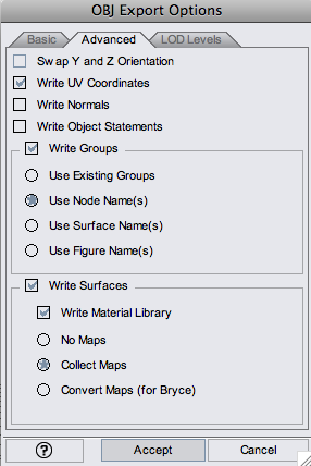 Als Wavefront speichern und mit diesen Optionen wie im Bild:
