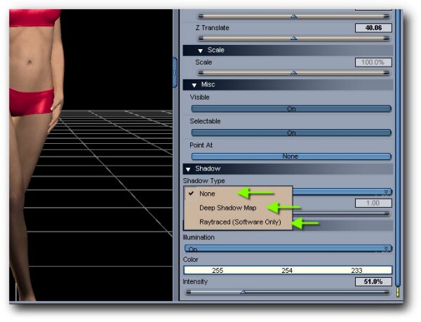 Schritt 4: Rendern (Schatten siehst Du erst im fertigen Render.)Deep Schadow Map entspricht in etwa den Schatten, den eine Glühlampe oder ein Spot verursacht. Raytraced erzeugt parallele Schatten, wie Sonnenlicht.
