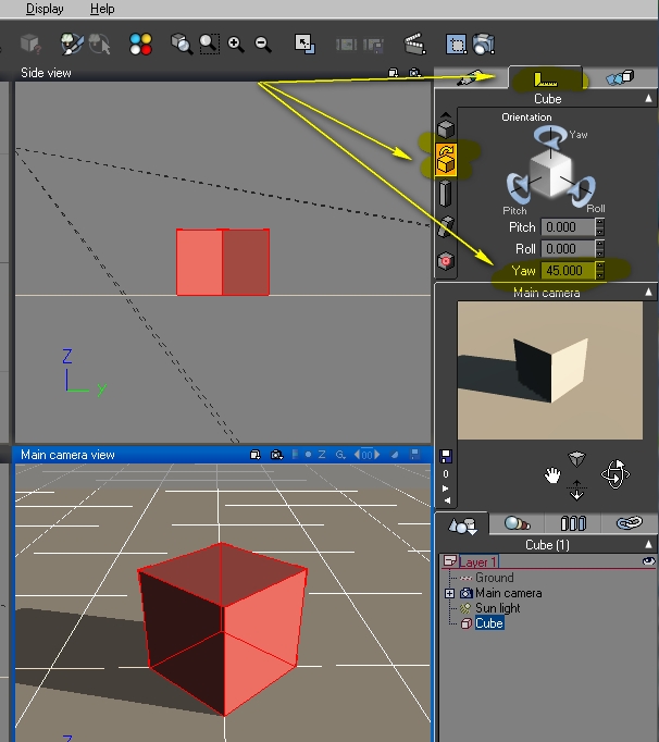 Beispiel: Ich möchte in Vue 7 Esprit ein Objekt um 45 Grad drehen. Es gibt zwar Anfasser zum Drehen aber eben keine Gradeinteilung sondern nur "m".