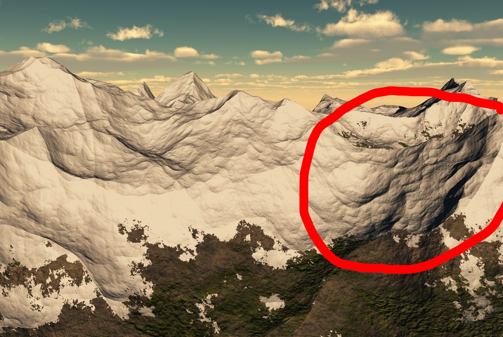 Die Textur ist nett. Da es ein Gebirgsmassiv darstellen soll, müsste man die Atmosphäre ein klein wenig mehr ins Spiel bringen.