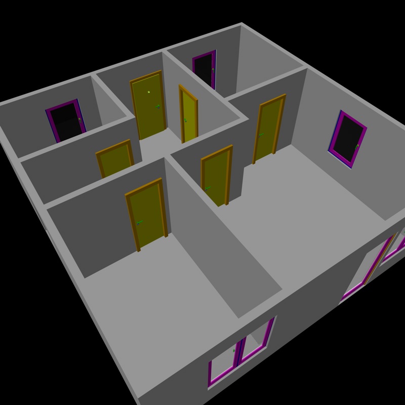 Die Schlafräume, Zimmer und ein großes Bad sind oben. Aber vielleicht sind die Türen und Fenster vielleicht doch ein klein wenig groß. Obwohl ich es mit V4 ausprobiert habe. In dem nächsten Bild ist die Figur mal drinne.