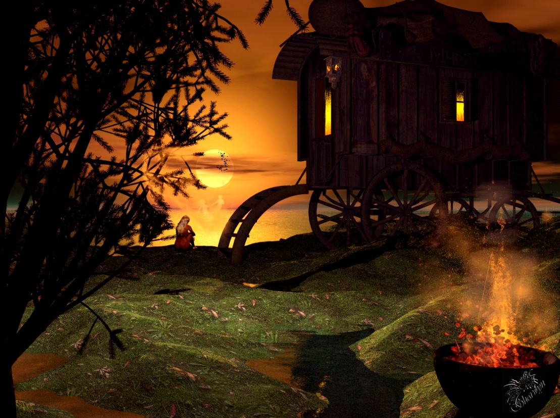 Die Wiese könnte mehr Bump vertragen, und das Feuer(?) vorne ein bisschen Postwork. ![]()