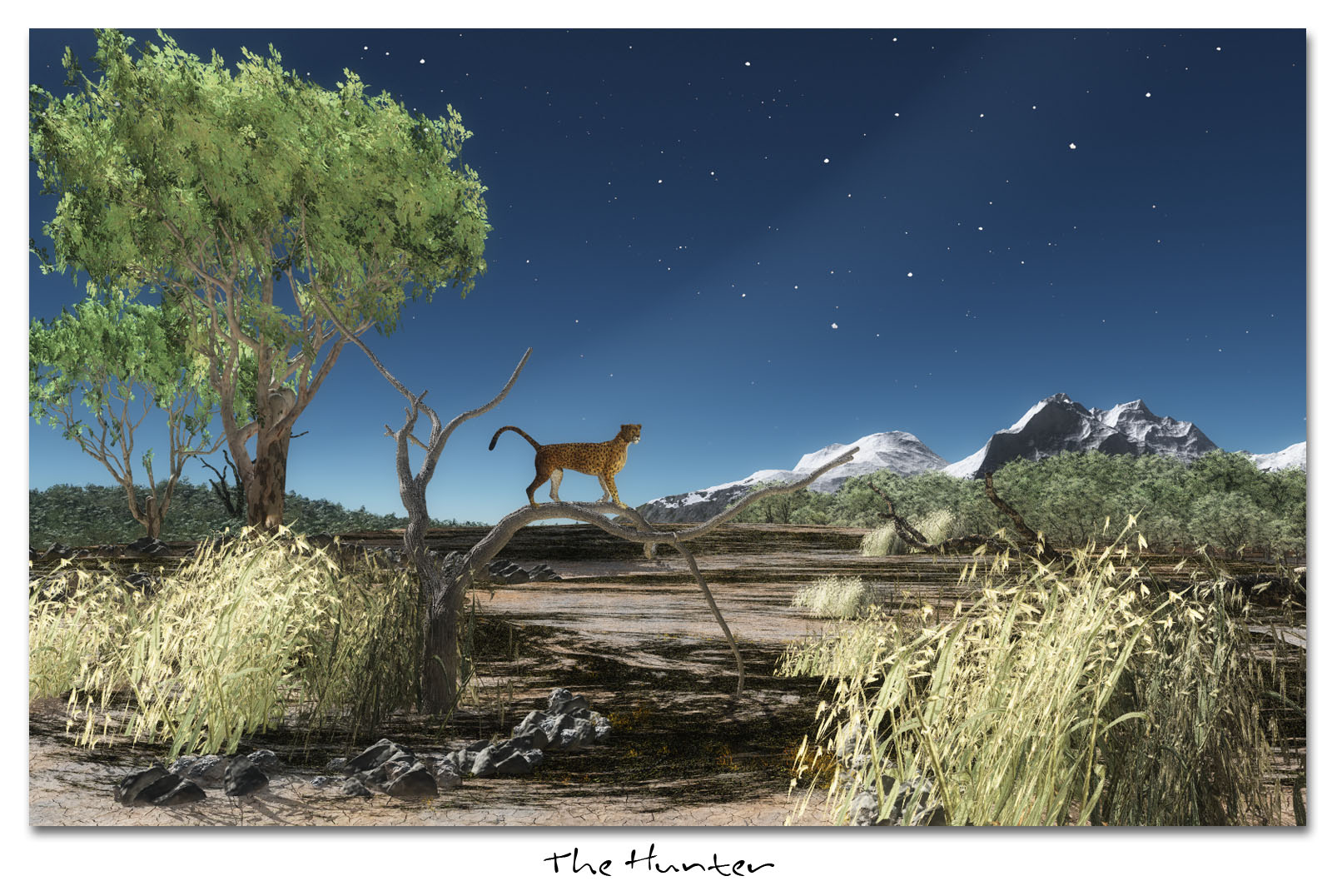 Die Szene hat nur einen Strahler, der auf das Tier gerichtet ist und nur das Tier anstrahlt.