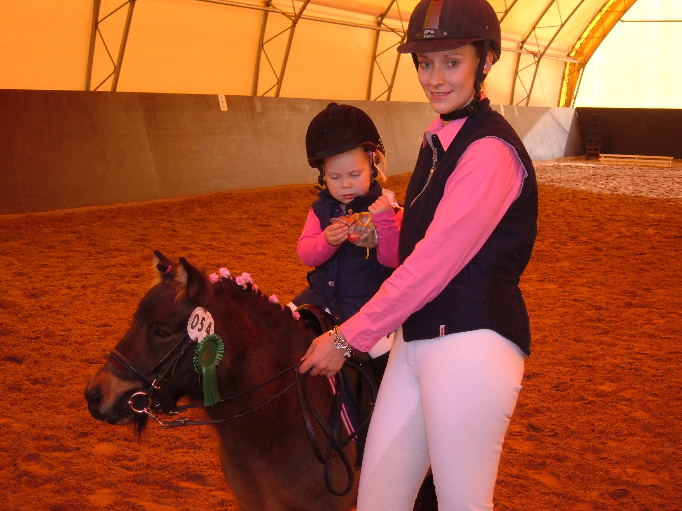 Trotzdem hier ein Bild des ersten Turniers meiner Enkeltochter in der Führzügelklasse (außer Konkurrenz, da noch nicht ganz drei Jahre alt).