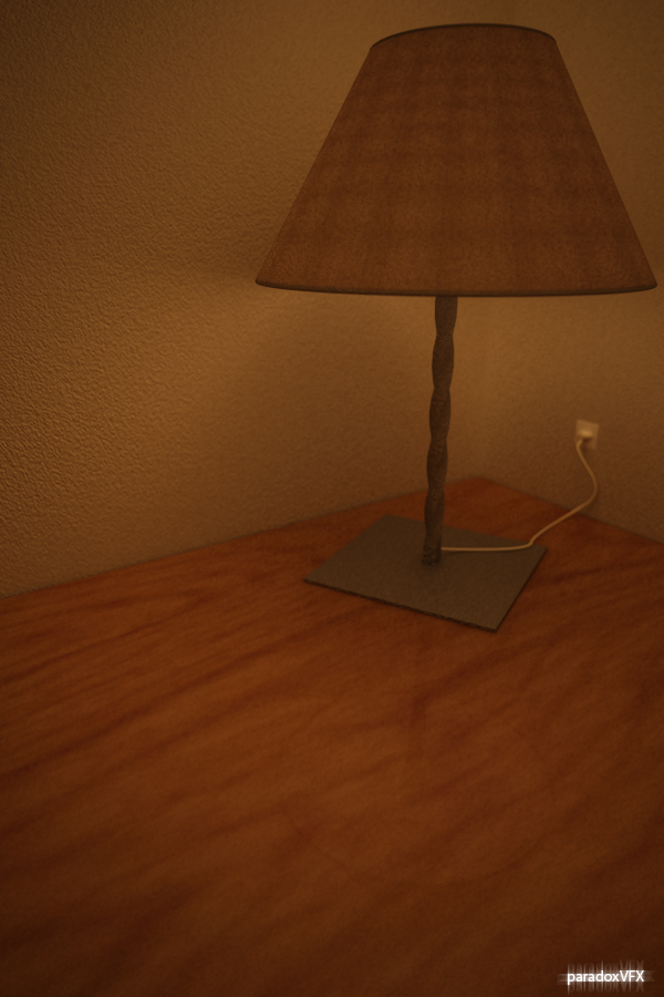 Der Lampenschirm ist 2D. Zuerst hatte er eine Dicke, aber dafür musste ich das Licht heller machen, was wiederrum der Atmosphäre schadet.