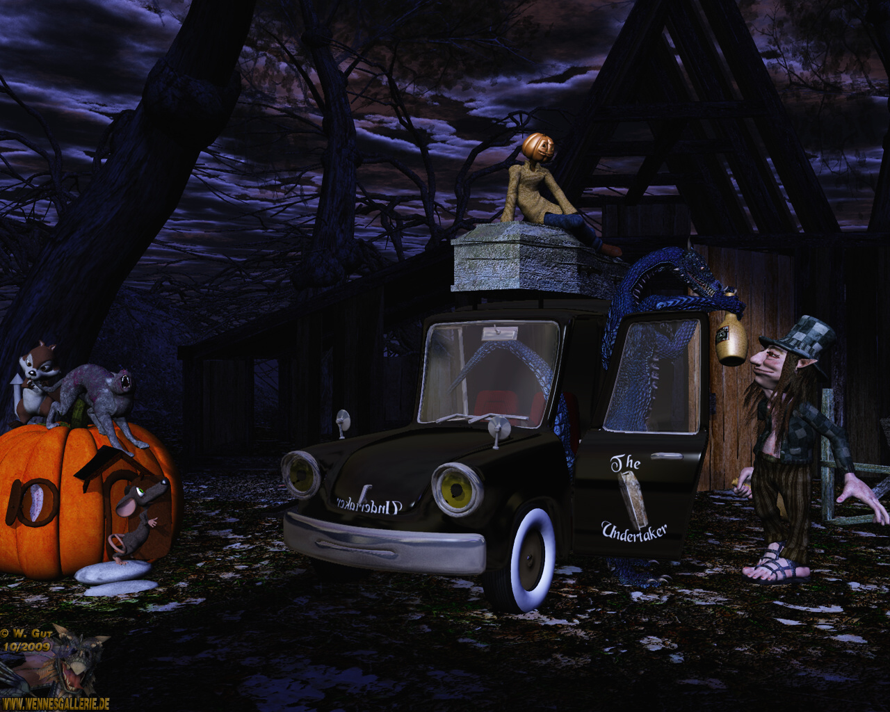 Dragobert hat seine alte Karre hergerichtet um mit Teo an Halloween die Strßen unsicher zu machen. :P:]:rolleyes: