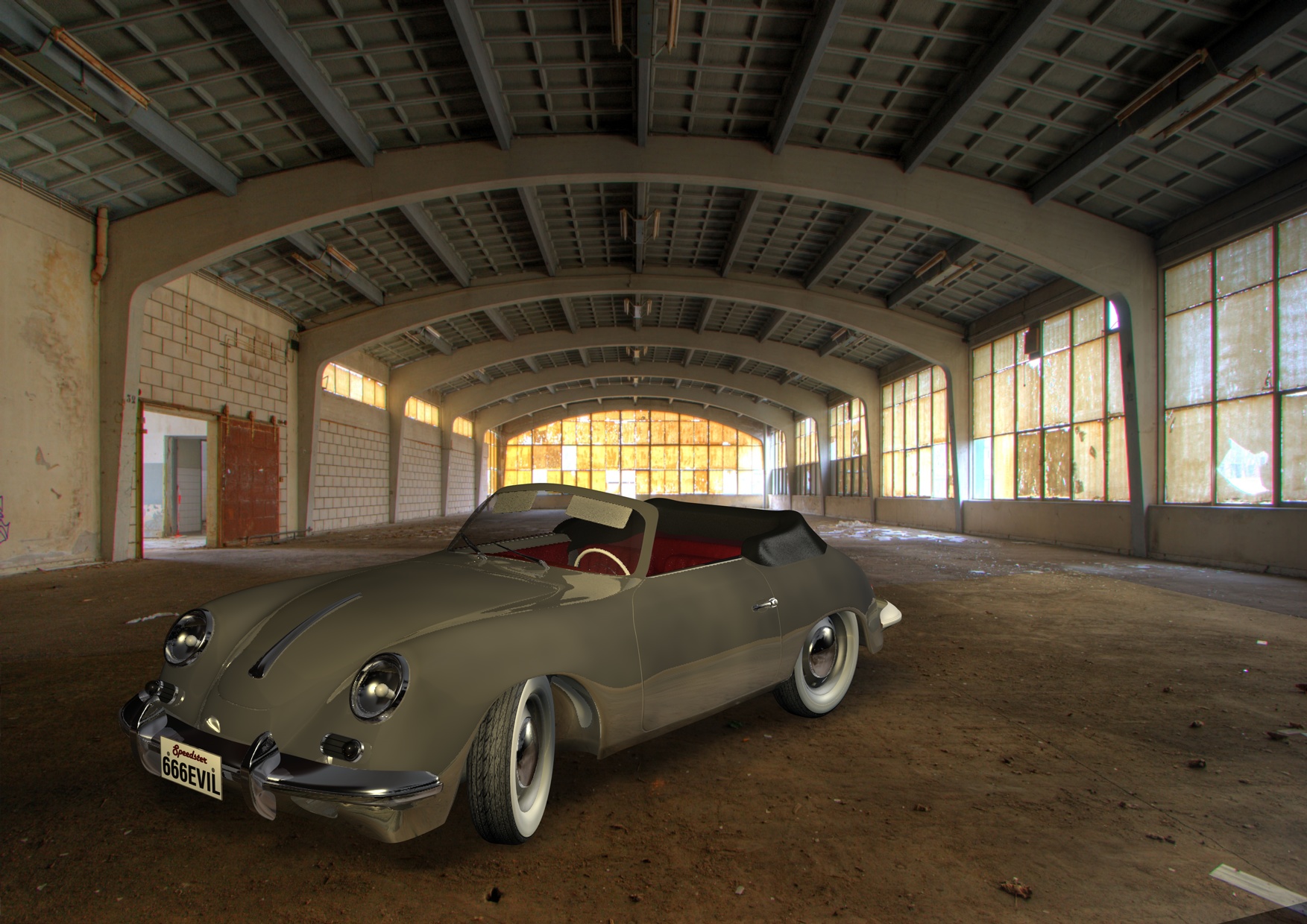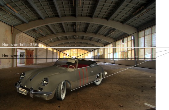 Ich finde Auto und Halle harmonieren noch nicht in der Perspektive; siehe Bildanhang.