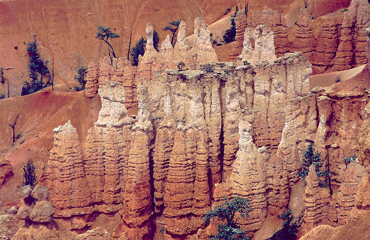 Als Beispiel habe ich mal ein Bild von einer Bleistiftzeichnung 50 x 65 cm, von einem Relief 50 x 65 cm sowie eine eigne Aufnahme vom Bryce Canyon beigefügt, die „Relikte“ im Relief stellen fiktive Gegenstände dar wie sie etwa bei einer Ausgrabung zu Tage treten.