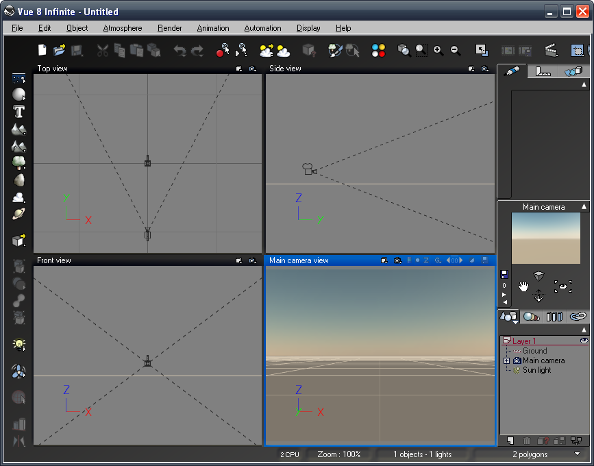 Vue 8 ist in dieser Version noch voll mit Bugs, in diesem Zustand hätte es nicht veröffentlicht werden dürfen. Kommt mir generell vor wie ein verfrühtes "Auf-Den-Markt-Schmeißen-Und-Mal-Sehen-Was-Passiert". Probleme gibt es unter anderem bei der Auswahl und Selektierung von Objekten und beim Laden von bestimmten Atmos (0x7c92171c-Fehler und Total-Crash). Vue 8 ist für produktives Arbeiten noch nicht zu empfehlen.