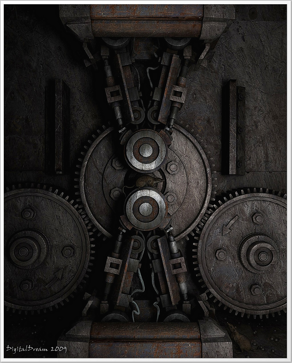 Hat entfernte Ähnlichkeit mit dem Öffnungsmechnismus einer Förderkorbverriegelung im Steinkohlenbergbau. Erstklassig texturiert. ![]()