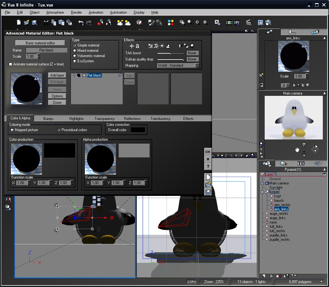 Ich bin gerade an meinem ersten Modellierversuch überhaupt, und das ganze in Vue 8 Infinite. Mein Ziel ist Tux (bekannt von Linux):