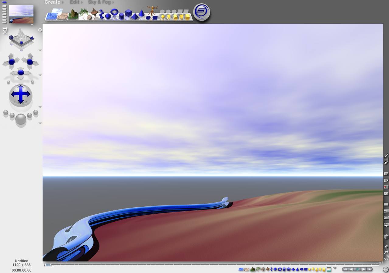 • So kann man eine Welle (die so wohl nicht in der Natur an den Strand klatscht) in AoI leicht modelieren und außerdem natürlich in Bryce importieren.