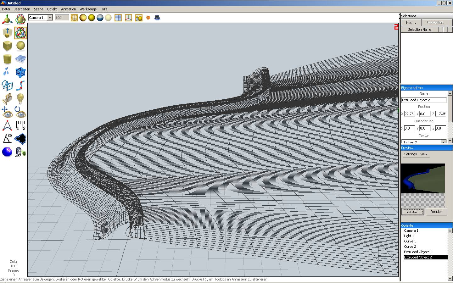 zweiten leicht gekrümmenten Kurve extrudieren.