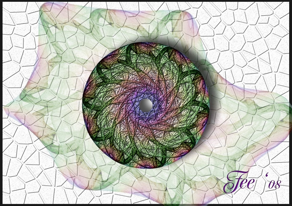 Bei Bild 1 ist viel PW dabei. Das sind drei verschiedene Apo-Flames, die man ja erst mal finden muss, das ich die aus meinen ersten Zufallsprodukten rekrutiert habe. Ich stelle sie dann mittels Farbmaske in Corel Photopaint frei. Die Blüte ist dann viel kopieren und drehen, anordnen, ausprobieren, wieder verwerfen und neu anfangen. Dann habe ich den Effektfilter Plastik von CPP angwendet. Hintergrund erstellt, Rahmen dazu. Fertig!