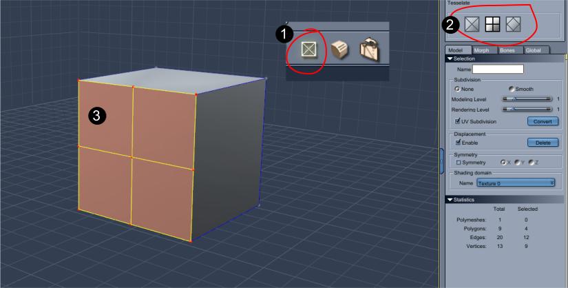 • Meinst du vieleicht tresselate? Damit kannst du die polygonflächen weiter unterteilen . Dazu wählst du das TresselateTool und noch die Methode aus wie die Unterteilung durchgeführt werden soll und dann klickst du die Fläche an die Unterteil werden soll.