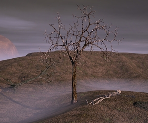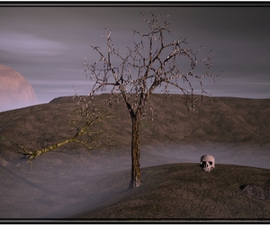Zur Baumtex wurde schon alles gesagt. Ansonsten trifft es den Titel schon sehr gut . Mit dem Schädel habe ich etwas Probleme, schwebt der oder liegt der auf dem Boden?